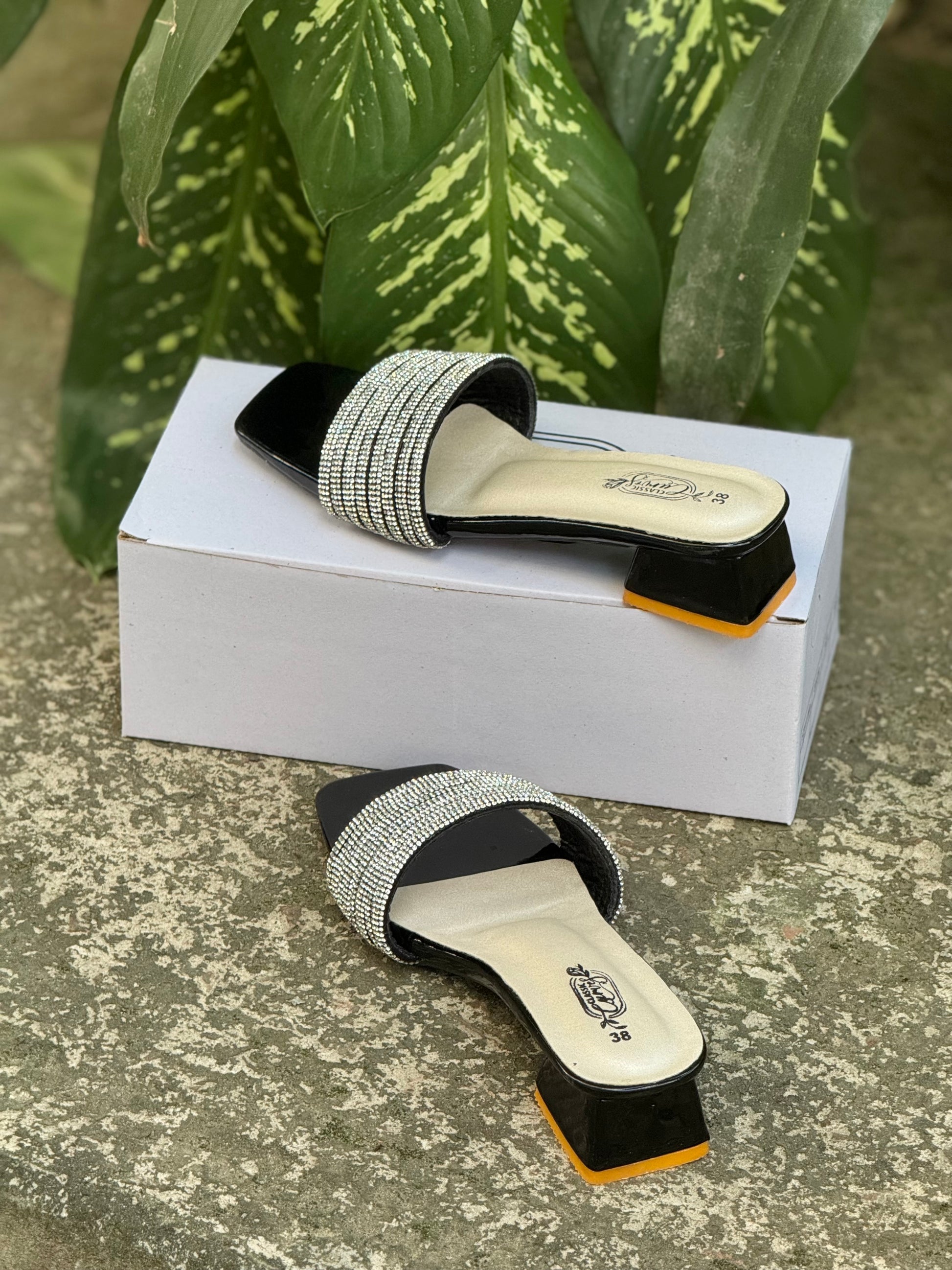 Step into effortless elegance with our 2-inch Black Stone Heels, designed to take you from daytime casual to evening glam in seconds. Featuring a sleek black finish with subtle stone embellishments, these heels add just the right amount of sparkle without overpowering your look.